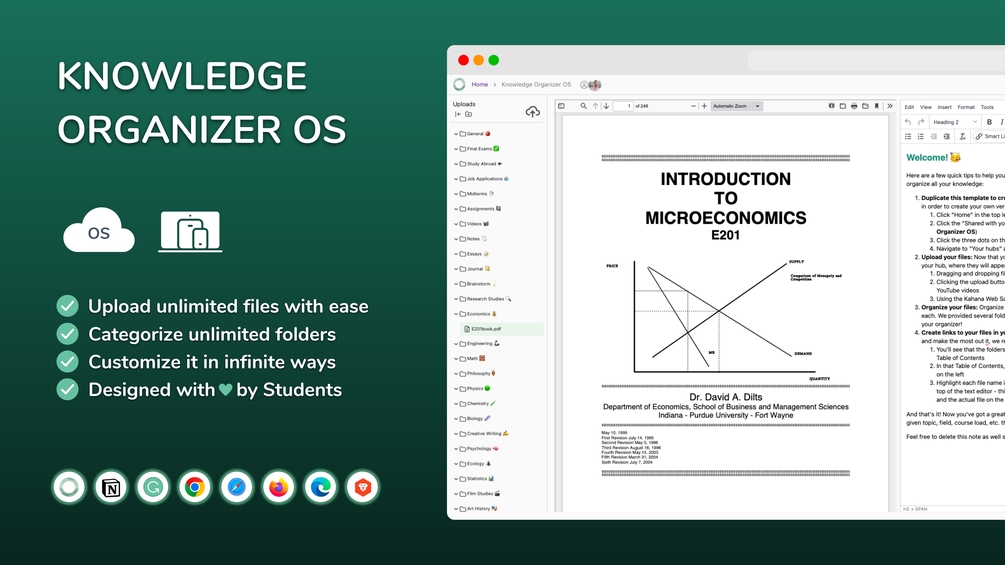 Build your second brain. Starting with this template is the most efficient way to curate, organize, and create a repository of all of your knowledge. Created by two former Duke engineering students and serial researchers (two nerdy information junkies π€)