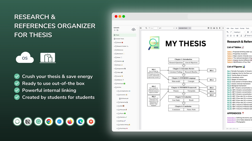 The smart way to manage your thesis. When you get the Research & References Organizer, you immediately save energy across the process of formulating and composing your thesis or dissertation.